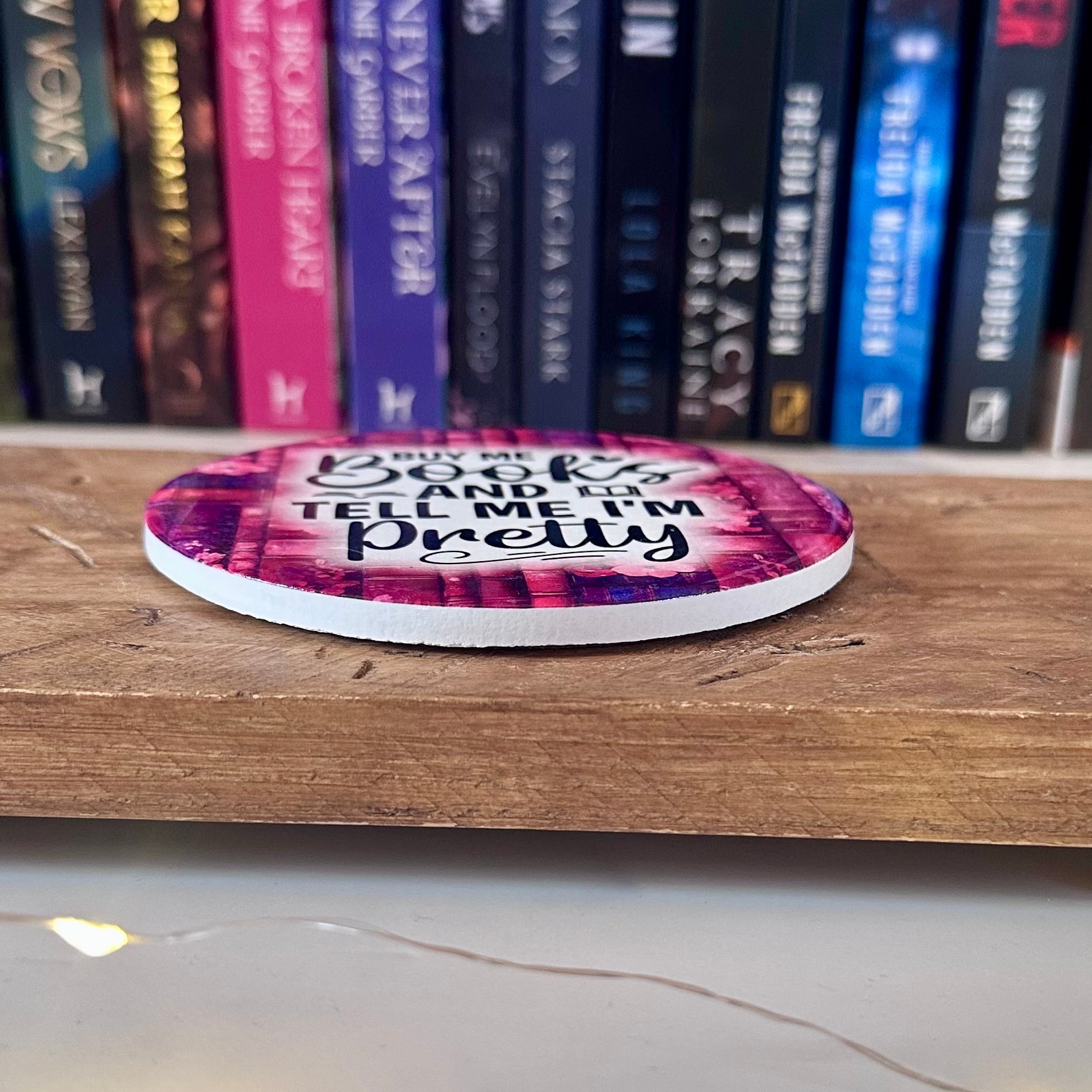 Buy Me Books and Tell Me I’m Pretty – Ceramic Bookish Coaster - PRE ORDER