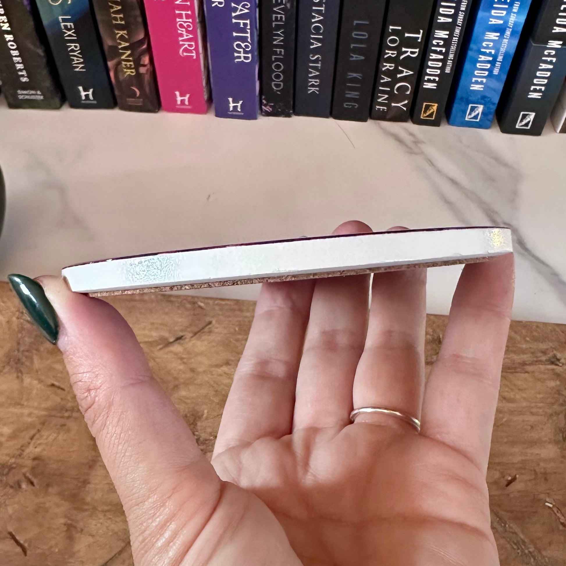 For every reader who’d rather be lost in a fictional world, this round ceramic coaster makes a perfectly bookish statement while keeping your surfaces safe.
